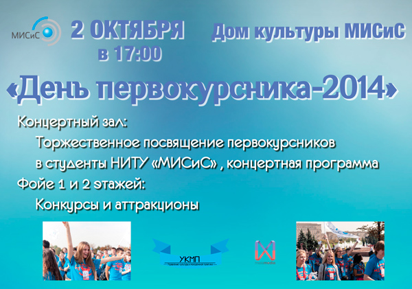 2 Октября в 17-00 в ДК НИТУ «МИСиС» состоится День первокурсника 2014