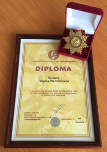 Высшая награда МГС ВОИР Grad Gold Archimedes и дипломом за большой вклад в международном развитие науки и техники были вручены Татьяне Райковой, патентному поверенному РФ, начальнику отдела интеллектуальной собственности НИТУ «МИСиС».