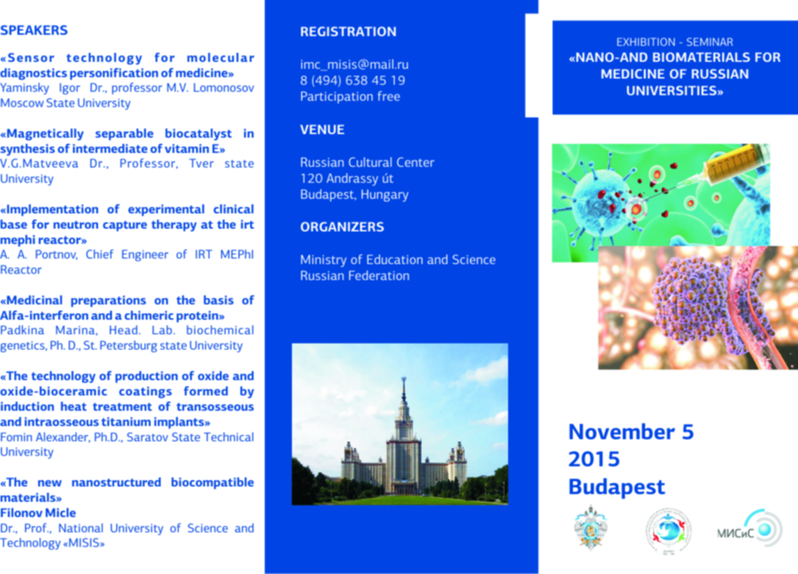 «Нано-, биоматериалы для медицины российских университетов», РЦНК, Будапешт, Венгрия.