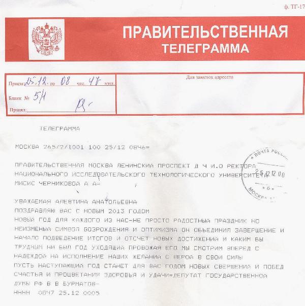 В новом году МИСиС как один из ведущих технологических вузов страны получил немало поздравлений от первых лиц государства, руководителей крупнейших промышленных предприятий и от своих коллег. Благодарим всех вас за теплые слова в наш адрес и желаем вам успехов и процветания в новом году!