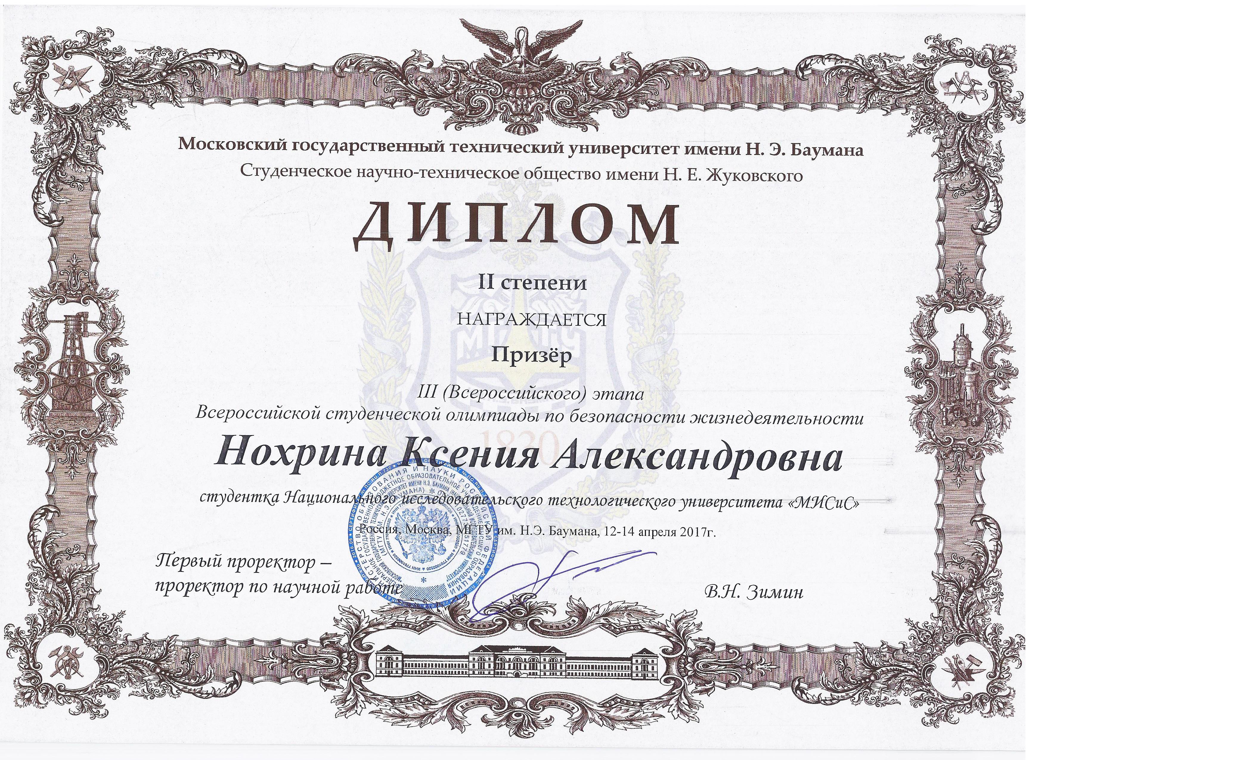 Команда НИТУ «МИСиС» заняла первое место в личном зачете Всероссийской студенческой олимпиады по безопасности жизнедеятельности, проходившей в середине апреля в МГТУ им. Н.Э.Баумана.