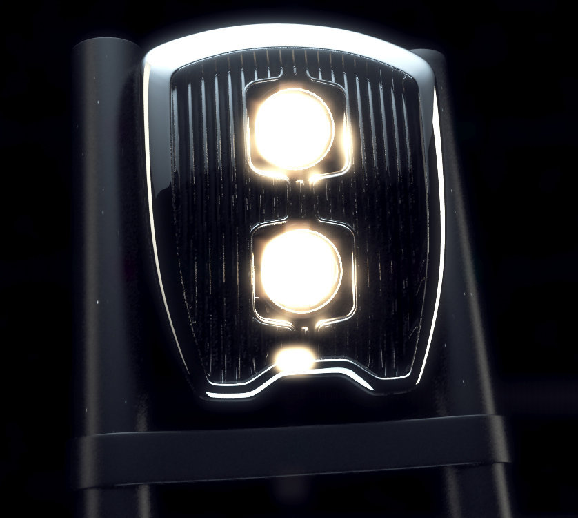 Чтобы свет не уходил с дорожного полотна и освещал дорогу мотоциклисту даже в поворотах, в фару внедрены элементы робототехники — шторка, регулирующая форму и направление светового пятна, управляемая микроконтроллером. В него вводятся параметры максимального угла наклона фары и мотоцикла, исходя из его технических характеристик. Во время движения гироскоп, соединенный с контроллером, следит за углом наклона и направлением поворота руля мотоцикла и корректирует положение шторки таким образом, чтобы свет фары был направлен на дорожное полотно.