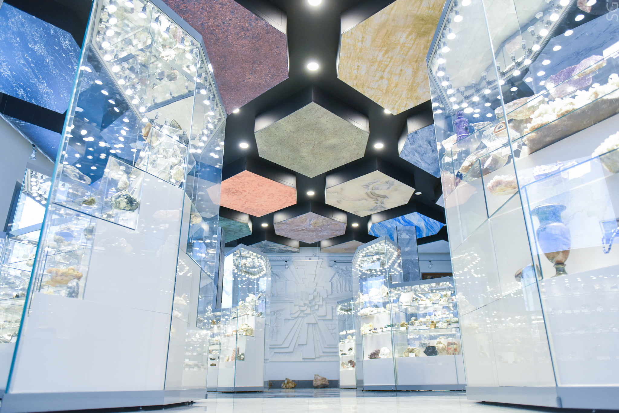 Музей оснащен интерактивными дисплеями, на каждом из которых отображается контент на определенную тему: «Азиатская часть России», «Самоцветы и ювелирные камни», «Европейская Россия и Урал», «Наука и жизнь», «Горное дело. Индустриальное наследие» и «Горное дело. Культурное наследие». Помимо этого, современное оборудование позволяет проводить лекции для абитуриентов и студентов разных уровней.