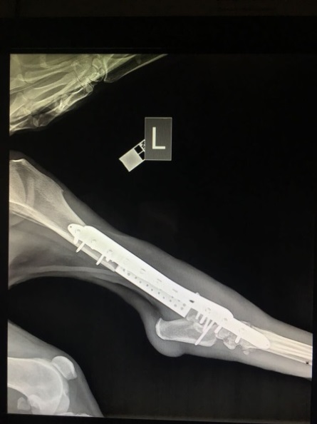 Рис. 2 — Рентгеновский снимок задней конечности животного после установки имплантата.