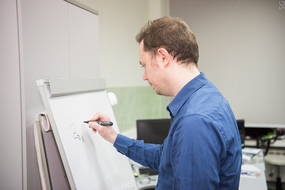 Дмитрий Московских, директор НИЦ «Конструкционные керамические наноматериалы» стоит в лаборатории около оборудованияДмитрий Московских, директор НИЦ «Конструкционные керамические наноматериалы» стоит в лаборатории около оборудования