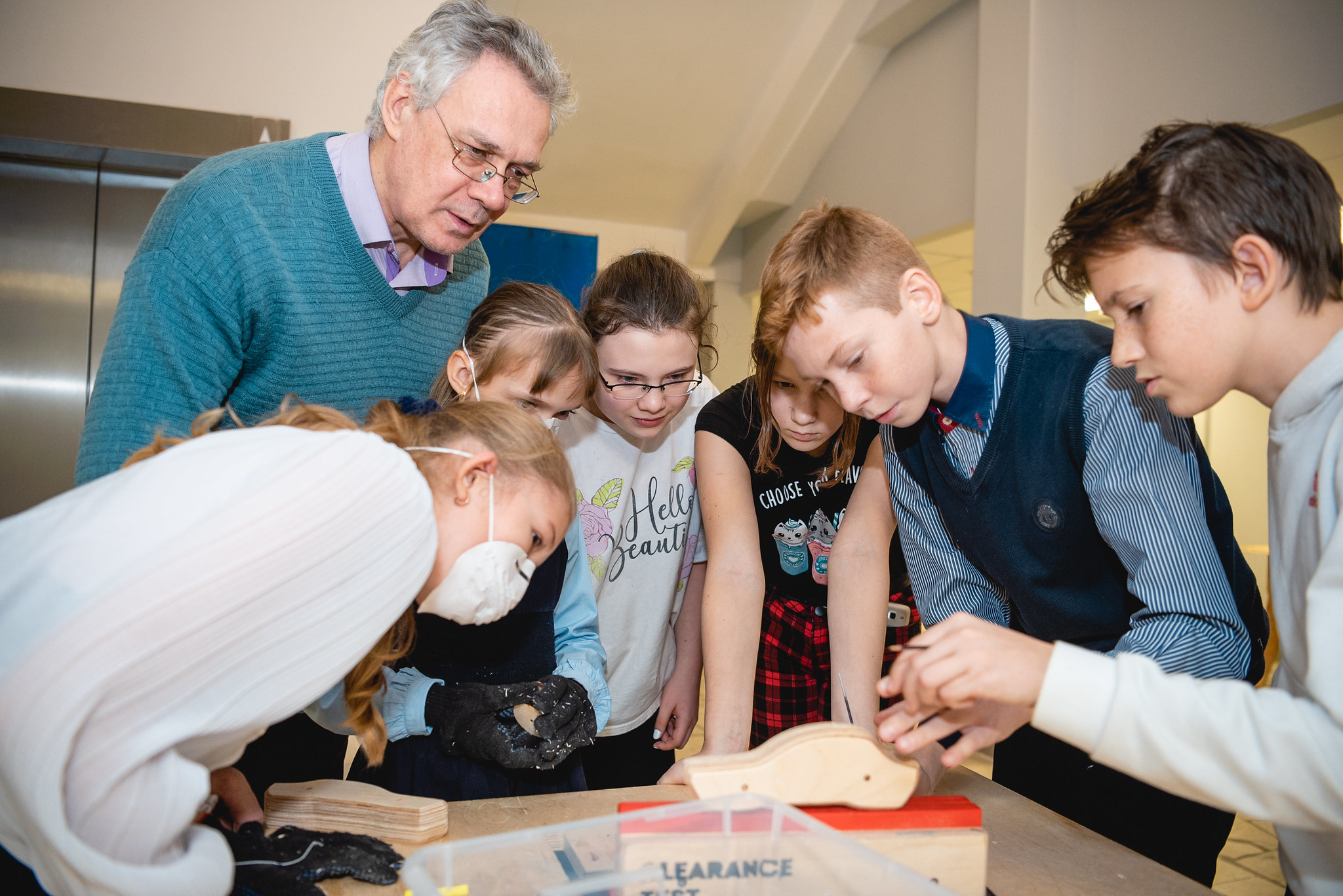 Сначала старшеклассники осваивали программу, создавая комплектующие для машинок, которые вырезали на лазерных станках, строили 3D-модели, делали корпуса автомобилей на фрезерном станке и изготавливали спойлеры — горизонтальные перекладины, которые крепят на крышки багажников. На третий день к ним присоединились младшие школьники, которые под присмотром родителей и старших товарищей обрабатывали и красили деревянные детали, собирали машинки, а после устраивали «гонки» на специальном треке.