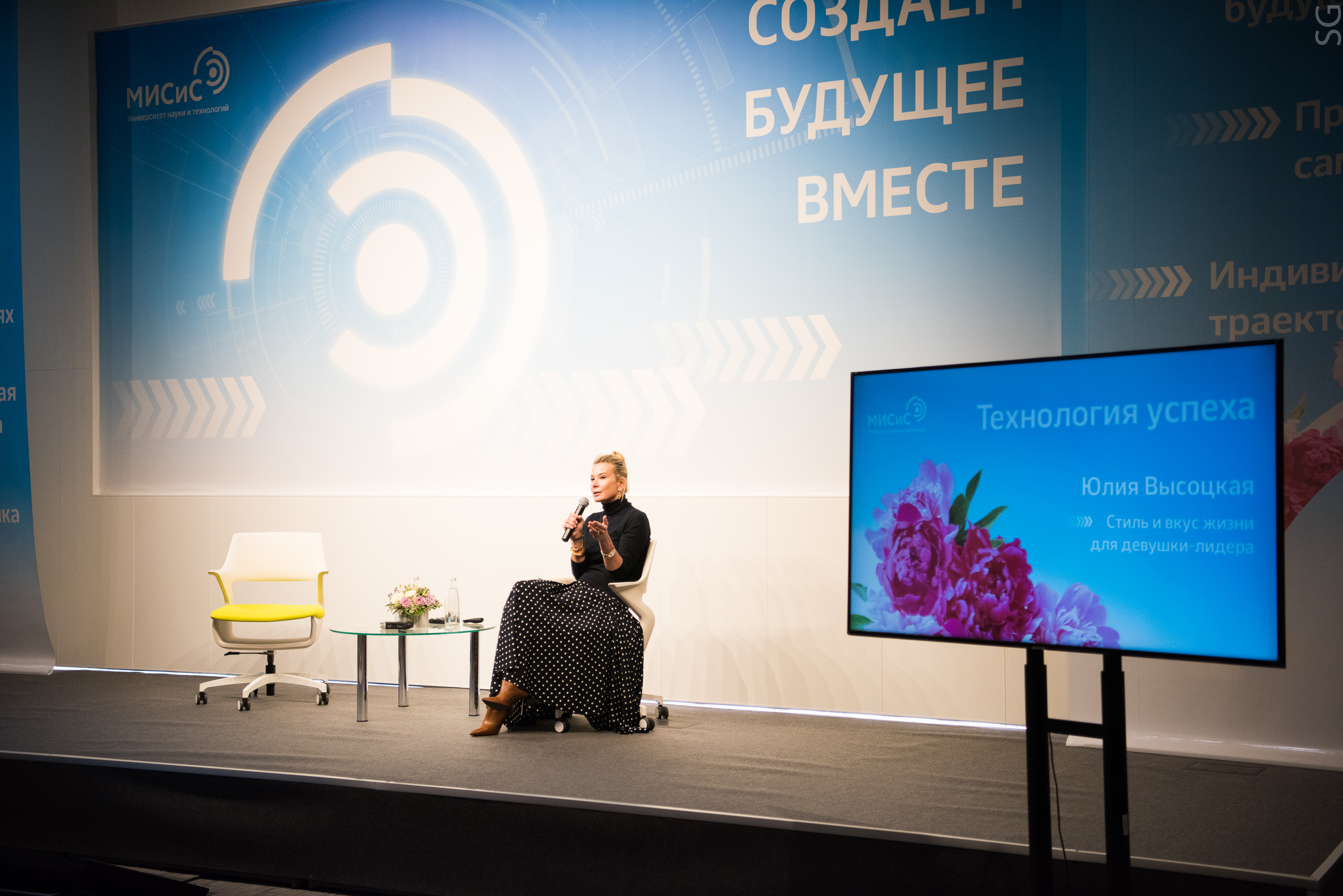 В преддверии Международного женского дня в НИТУ «МИСиС» состоялась встреча с заслуженной артисткой Российской Федерации, актрисой театра и кино, телеведущей, автором кулинарных книг и создательницей проекта «Едим дома!» Юлией Высоцкой. Женственная и утонченная, Юлия рассказала о своем образе мышления и тех сферах, в которых ей удалось добиться успеха.