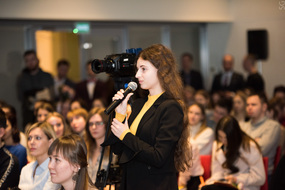 Студенты с интересом задавали вопросы на самые разные темы: про любимые роли, вдохновение, наставников и др. На вопрос о том, какими качествами должна обладать девушка-лидер, Юлия ответила, что она должна быть внимательной к тому, что происходит вокруг, и не быть ленивой.