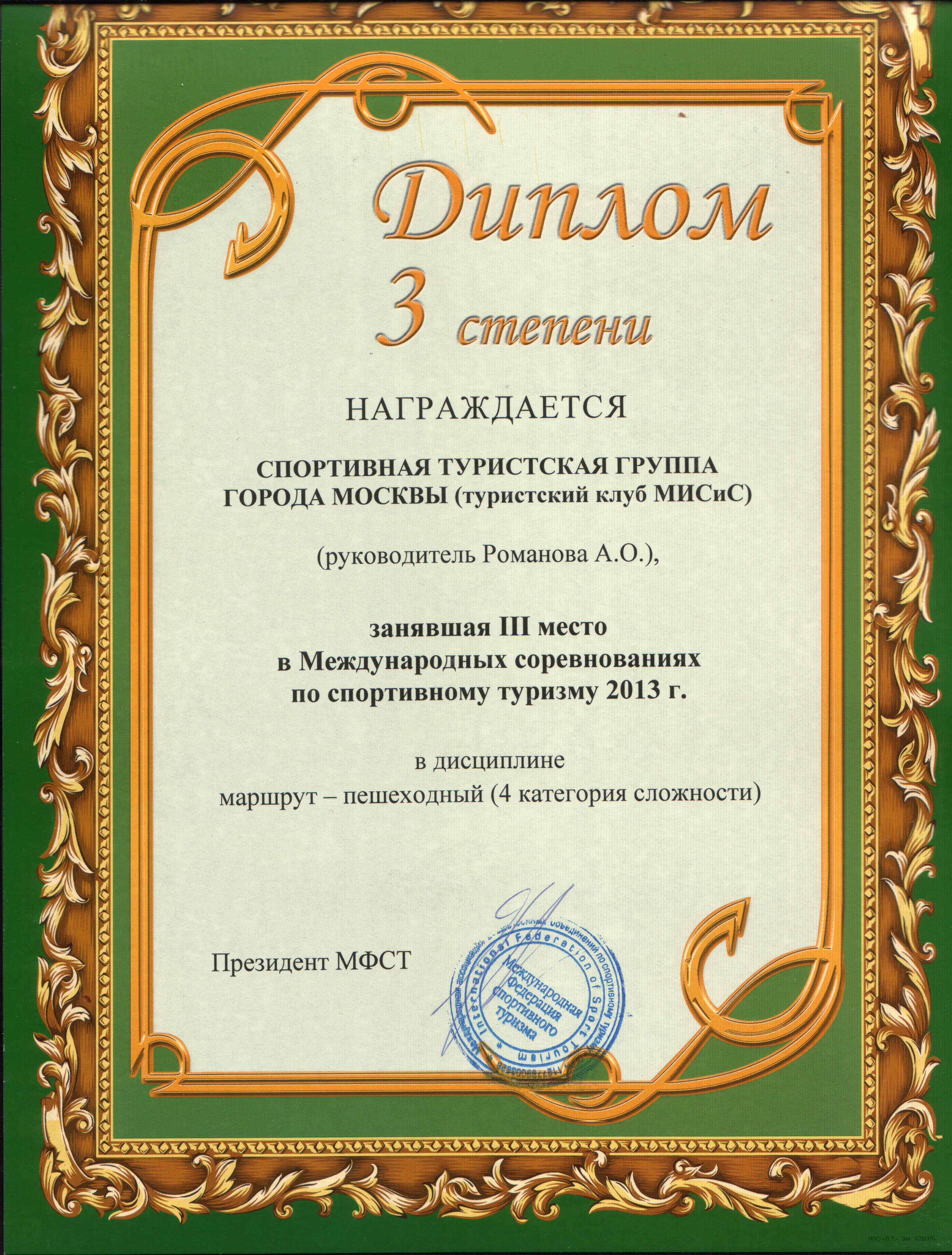 7 апреля состоялось награждение участников Международных соревнований по спортивному туризму 2013 года.