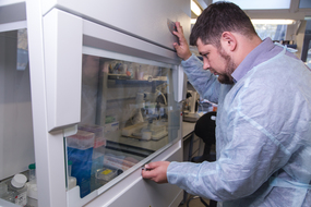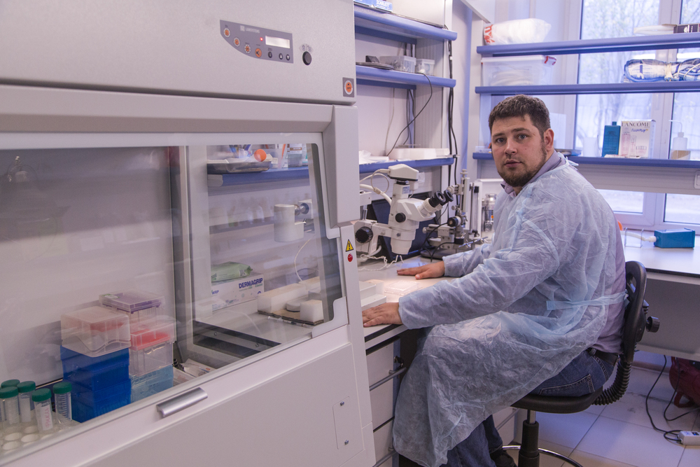Дмитрий Московских, директор НИЦ «Конструкционные керамические наноматериалы» стоит в лаборатории около оборудованияДмитрий Московских, директор НИЦ «Конструкционные керамические наноматериалы» стоит в лаборатории около оборудования