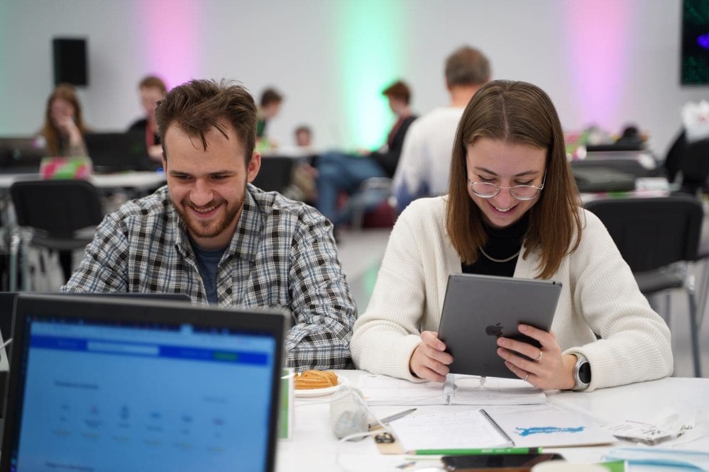 Участники команды-победителя Moscow Hares — студент третьего курса НИТУ «МИСиС» Даниил Степанов и студентка второго курса РЭУ им. Г.В. Плеханова Анна Беляева.