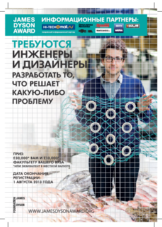 Приглашаем принять участие в 8-м ежегодном международном конкурсе изобретателей James Dyson Award. Конкурс на лучшее студенческое изобретение стартовал во всем мире 14-го марта 2013 года. «Премия Джеймса Дайсона» является международным конкурсом, призванным отметить, поддержать и воодушевить конструкторов и дизайнеров нового поколения. Он проводится под эгидой «Фонда Джеймса Дайсона», одной из задач которого является поддержка молодых инженеров и конструкторов.