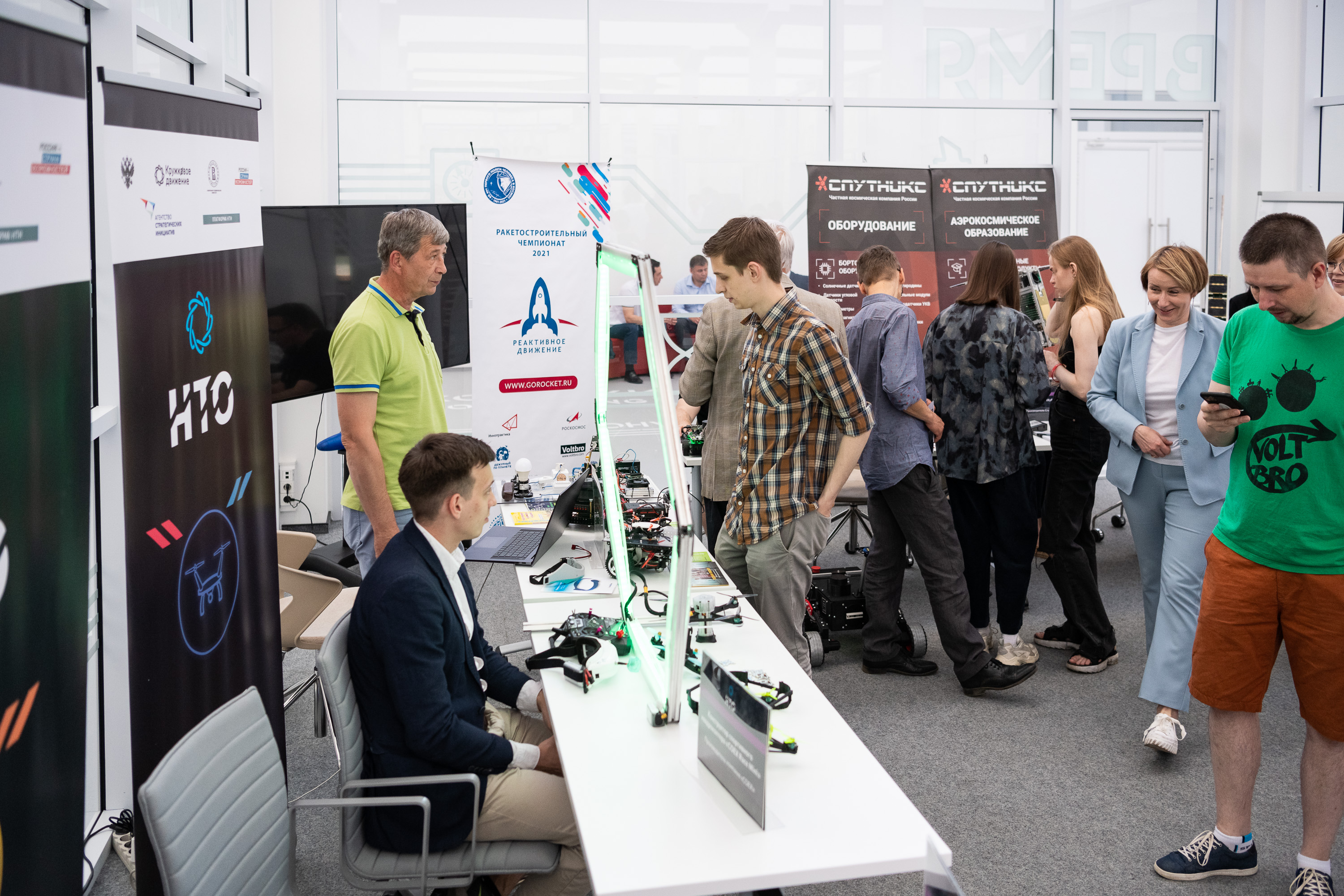 В программу мероприятия вошла выставка лучших проектов Национальной технологической олимпиады (НТО), где участники могли познакомиться с проектами и решениями в сфере робототехники, беспилотных транспортных средств, нейротехнологий и космической инженерии. В выставке приняли участие разработчик учебных лабораторий и конструкторов для изучения основ нейротехнологий BiTronics Lab и лидер в области летающей робототехники компания «Коптер Экспресс». Свои решения также представила компания «Братья Вольт» — разработчик курсов, соревнований и оборудования для инженерного образования в области аэрокосмической инженерии и робототехники.