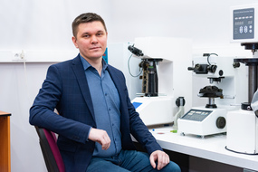 Дмитрий Московских, директор НИЦ «Конструкционные керамические наноматериалы» стоит в лаборатории около оборудованияДмитрий Московских, директор НИЦ «Конструкционные керамические наноматериалы» стоит в лаборатории около оборудования
