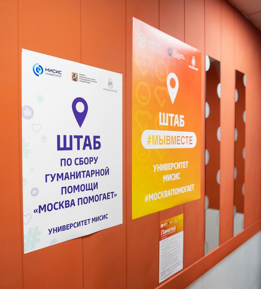 C апреля 2022 года в НИТУ МИСИС действует штаб #МЫВМЕСТЕ, созданный при поддержке Министерства науки и высшего образования РФ, Федерального агентства по делам молодежи, Комитета общественных связей и молодежной политики города Москвы, ресурсного центра «Мосволонтер».