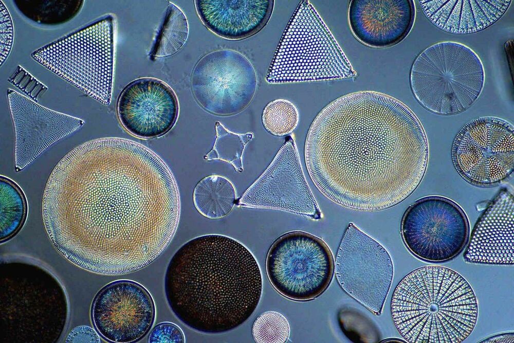 Диатомовые — обширная группа одноклеточных водорослей с характерным твёрдым, лёгким и пористым панцирем из диоксида кремния. В ходе эволюции эти организмы так хорошо приспособились к условиям существования как в солёных, так и в пресноводных водоёмах разного состава и температур, что смогли успешно заселить практически все водоёмы на Земле: на их долю приходится четверть всей биомассы, производимой на планете, а также пятая часть всего вырабатываемого фотосинтезом кислорода. Когда говорят о большой экологической роли планктона, следует учитывать, что именно диатомовые — одна из его основных составляющих.
