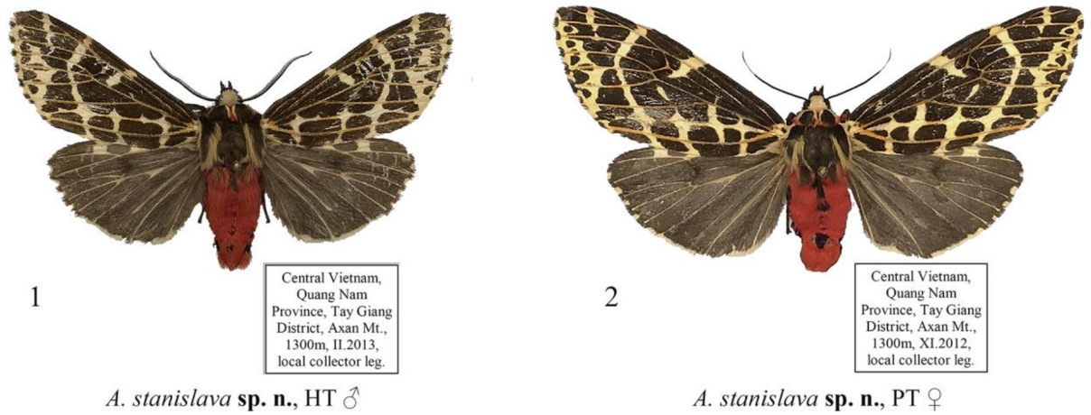 Еще один ранее неизвестный вид бабочки-медведицы из семейства эребид, обитающих во Вьетнаме и Лаосе, получил имя в честь дочери ученого Станиславы — Alphaea (Nayaca) stanislava.