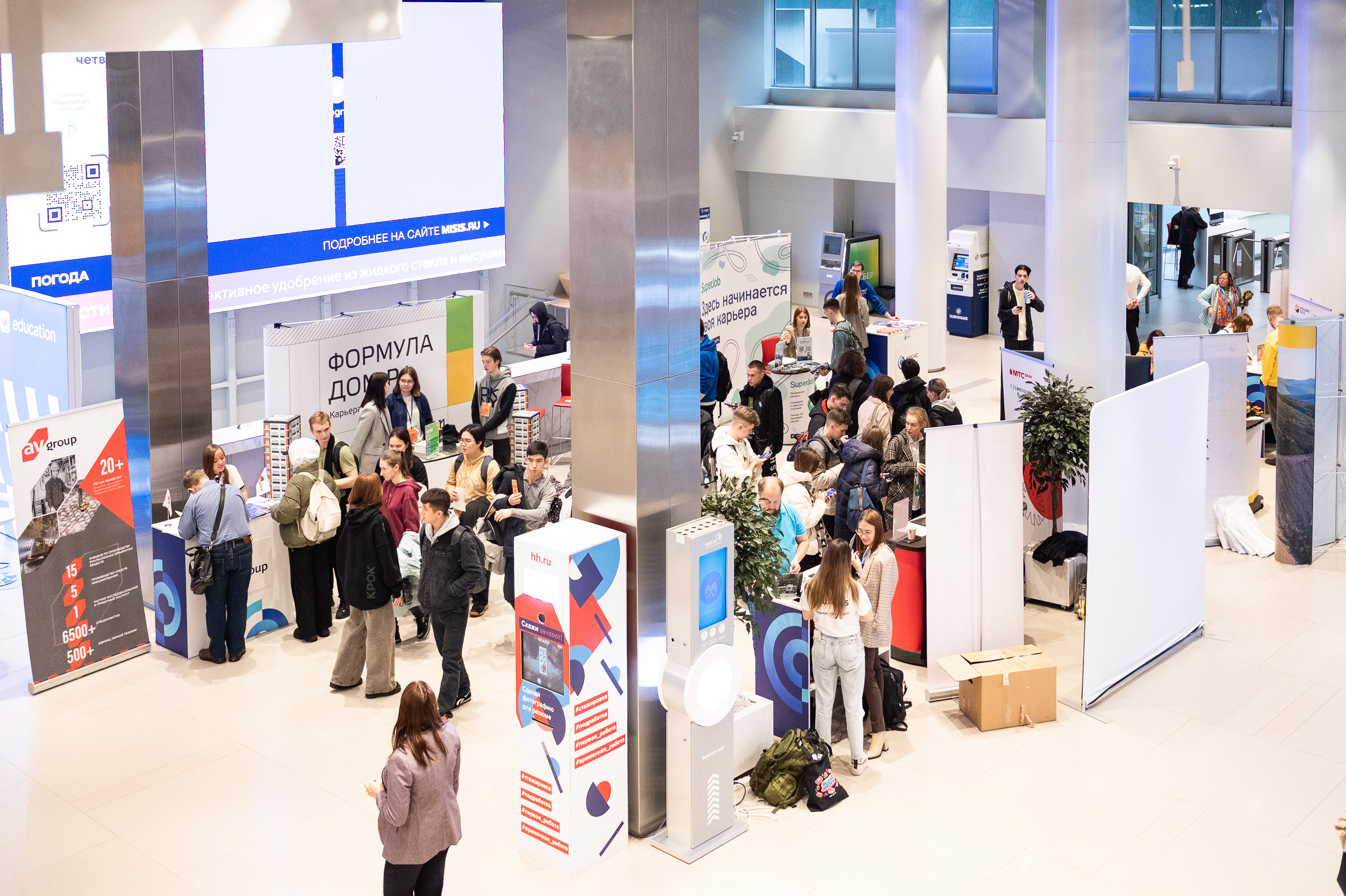 Университет МИСИС провел осеннюю Ярмарку вакансий, в которой приняло участие рекордное количество бизнес-партнеров. В университет приехали представители более 35 крупнейших компаний страны: СБЕР, VK, ДОМ.РФ, Росатом, Highland Gold, OZON, КРОК, Аквариус, ФосАгро, НЛМК, Норникель, ВоркутаУголь, МБУ ФК и др. Мероприятие посетило 3000 человек, более 500 обучающихся получили предложения о прохождении стажировки или практики и приглашение на собеседование.