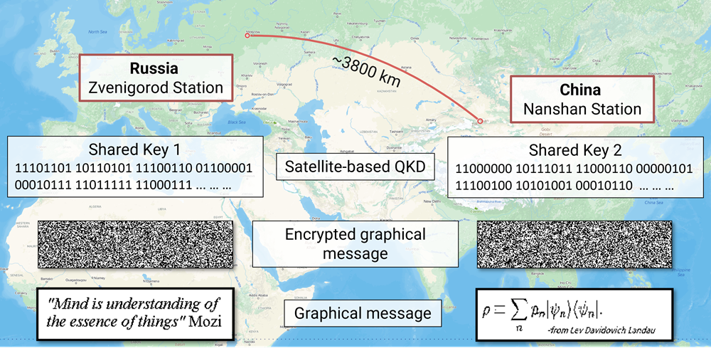 Традиционная криптография для защиты информации использует математические алгоритмы, квантовая базируется на физике. Если информация закодирована в одиночные кванты, то её невозможно незаметно считать. Это дает возможность передавать криптографические ключи. Серьезным ограничением для такой инфраструктуры является необходимость установки промежуточных доверенных узлов из-за ослабления оптического сигнала в волокне, по которому передаются фотоны. Хотя такие системы уже созданы между Москвой и Санкт-Петербургом. В Китае функционирует квантовая сеть протяженностью 4600 км, которой пользуются банки и компании. Чтобы решить проблему квантовых коммуникаций между разными континентами, китайские ученые с 2016 начали работать со спутником «Мо-цзы». Команда российских ученых из НИТУ МИСИС, Российского квантового центра (РКЦ), компании «КуСпэйс Технологии» вместе с коллегами начали работать со спутником Мо-цзы в 2019 году. За прошедшие годы был проведен ряд экспериментов, который позволил реализовать квантовое распределение ключей между двумя точками на расстоянии 3800 км: между наземными станциями в Звенигороде и Наньшане.