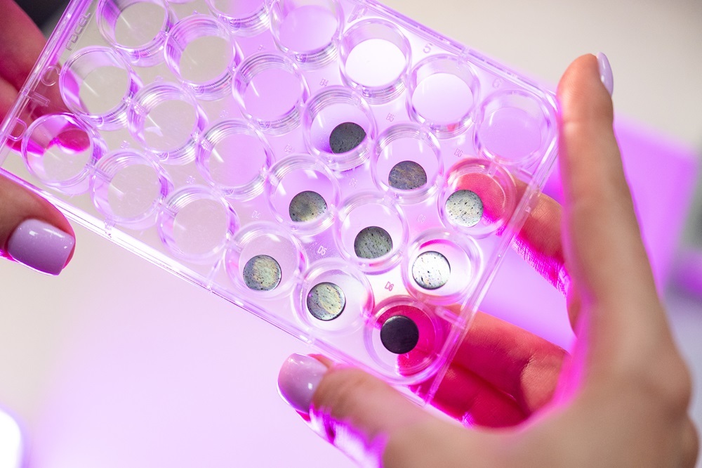 Одним из наиболее перспективных материалов в биомедицине является сверхупругий сплав титана с цирконием и ниобием. Он обладает повышенной биосовместимостью, способен имитировать механическое поведение кости и более долговечен при повторяющихся нагрузках. Однако установка имплантата, несмотря на стерильность операции, нередко сопровождается инфекцией из-за индивидуальной восприимчивости организма. В некоторых случаях бактерии образуют биопленку на поверхности сплава. Воспаления, возникающие на стыке костной ткани и металла, трудно подавить с помощью традиционной противомикробной терапии.