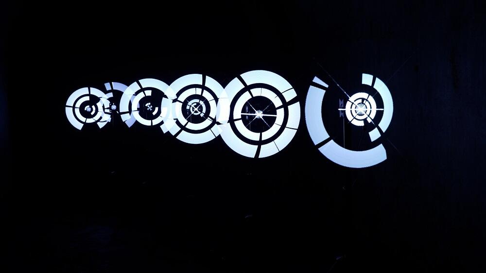 Преподаватели магистратуры и медиахудожники Евгений и Анастасия Лукута представили две динамических объекта. Один из них — «Арка» — формировал голографические образы через светодиодные вращающиеся носители, где цикл трансляции завершался логотипом Университета МИСИС.