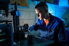 Дмитрий Московских, директор НИЦ «Конструкционные керамические наноматериалы» стоит в лаборатории около оборудованияДмитрий Московских, директор НИЦ «Конструкционные керамические наноматериалы» стоит в лаборатории около оборудования