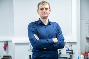 Дмитрий Московских, директор НИЦ «Конструкционные керамические наноматериалы» стоит в лаборатории около оборудованияДмитрий Московских, директор НИЦ «Конструкционные керамические наноматериалы» стоит в лаборатории около оборудования