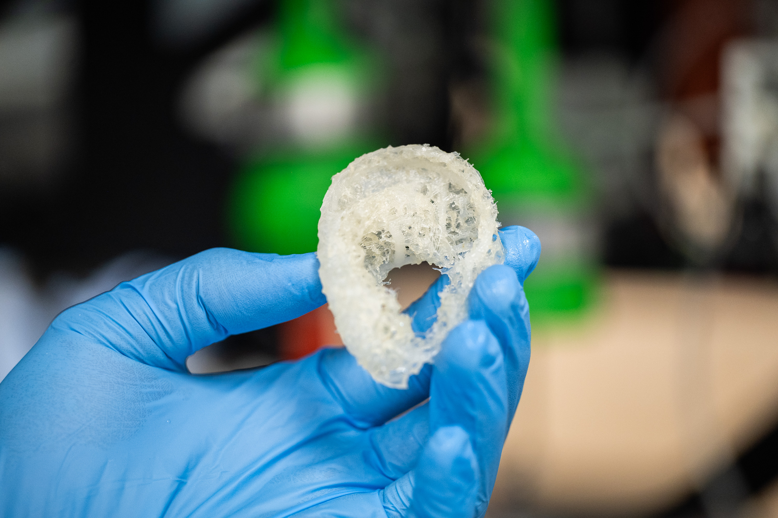 Протезы синтезируются из двух функциональных составляющих — пористого 3D-печатного каркаса и агарового гидрогеля в качестве наполнителя, сшитого феруловой кислотой. Гироидная структура полиуретанового каркаса способствует прорастанию сосудов, а интегрированные ребра жесткости обеспечивают сохранение формы под действием силы натяжения кожных лоскутов, что приближает имплантат к естественным ушным раковинам по биофизическим характеристикам. Использование аддитивных технологий также помогает решать задачу точного воссоздания формы и рельефа ушных раковин индивидуальных пациентов.